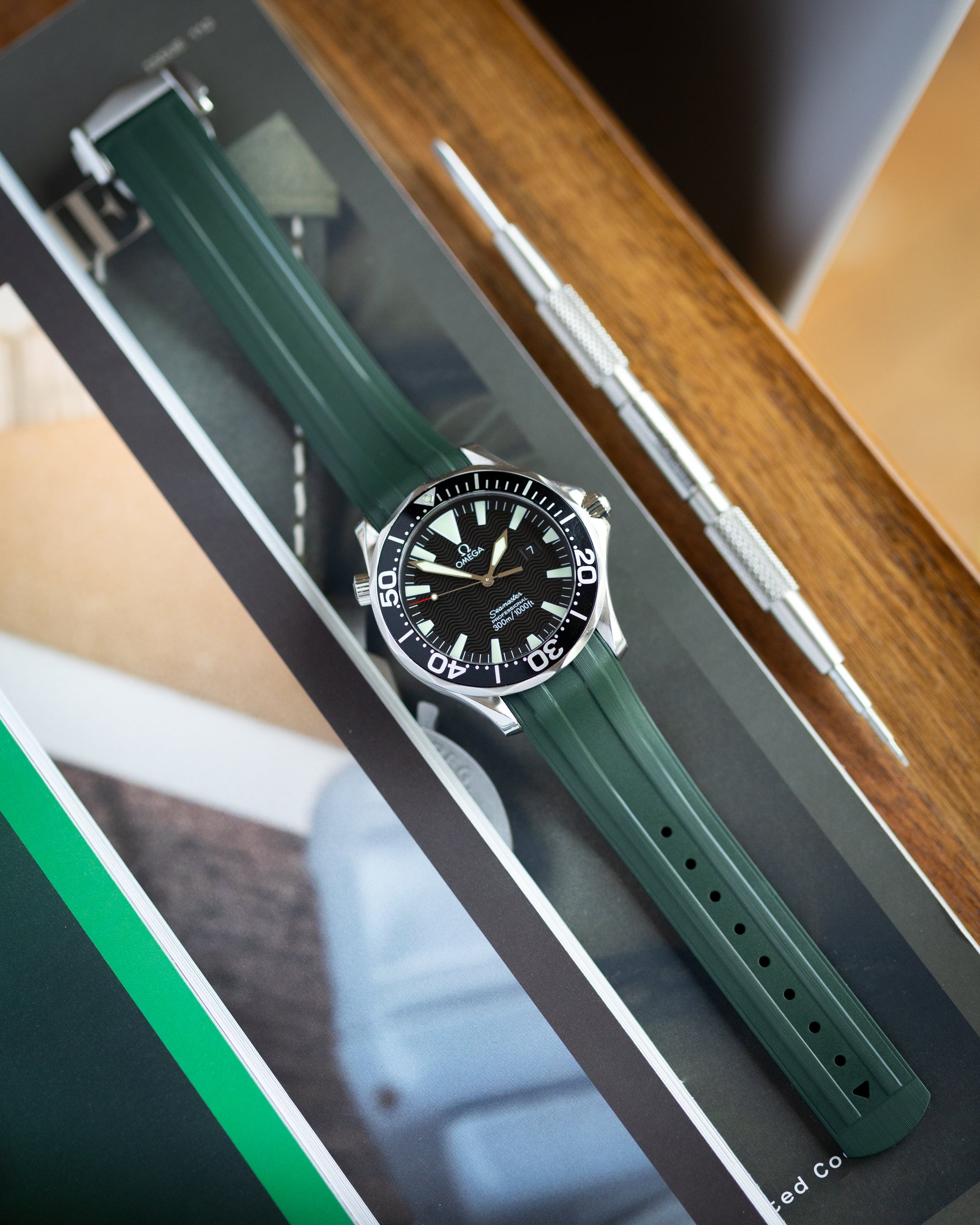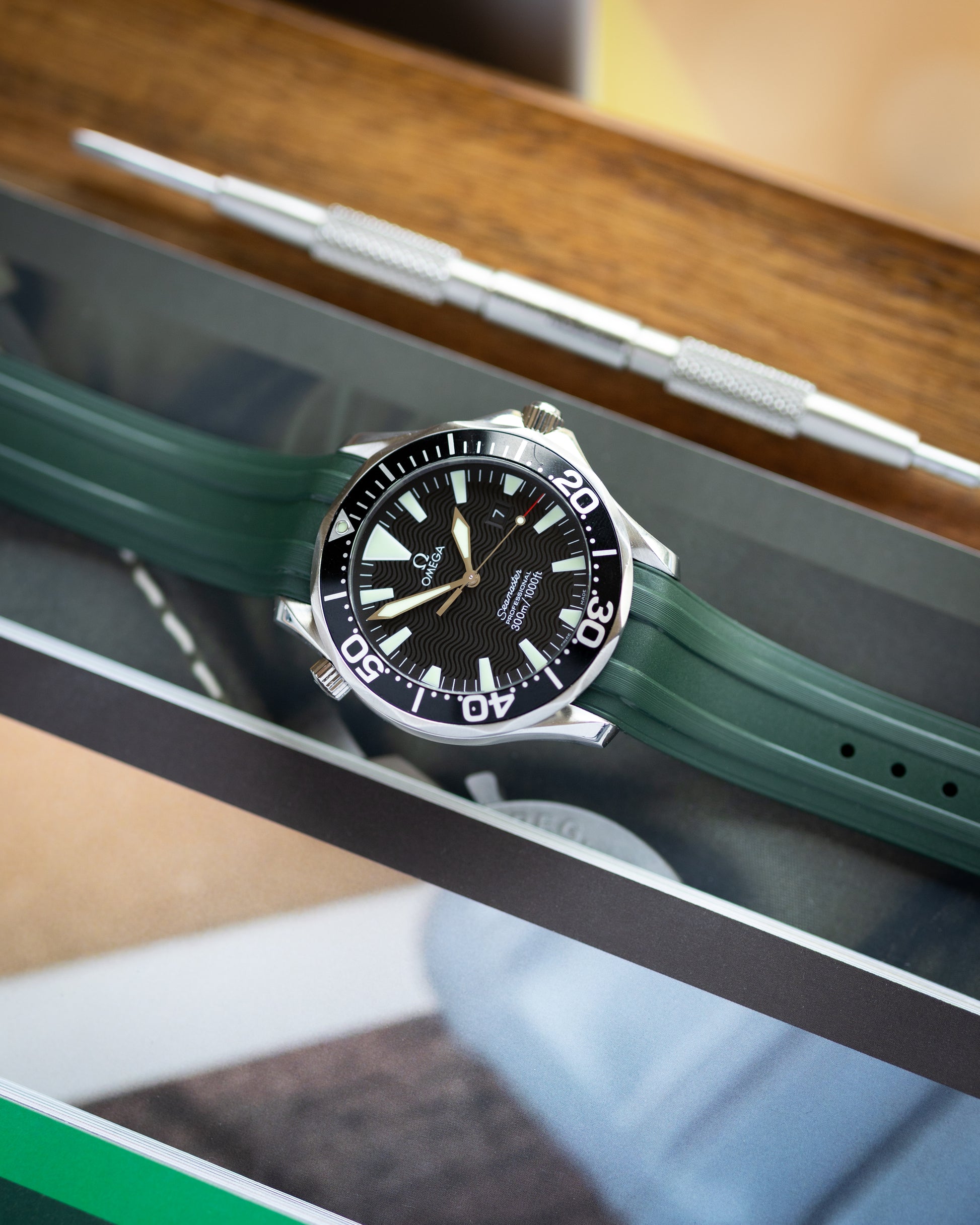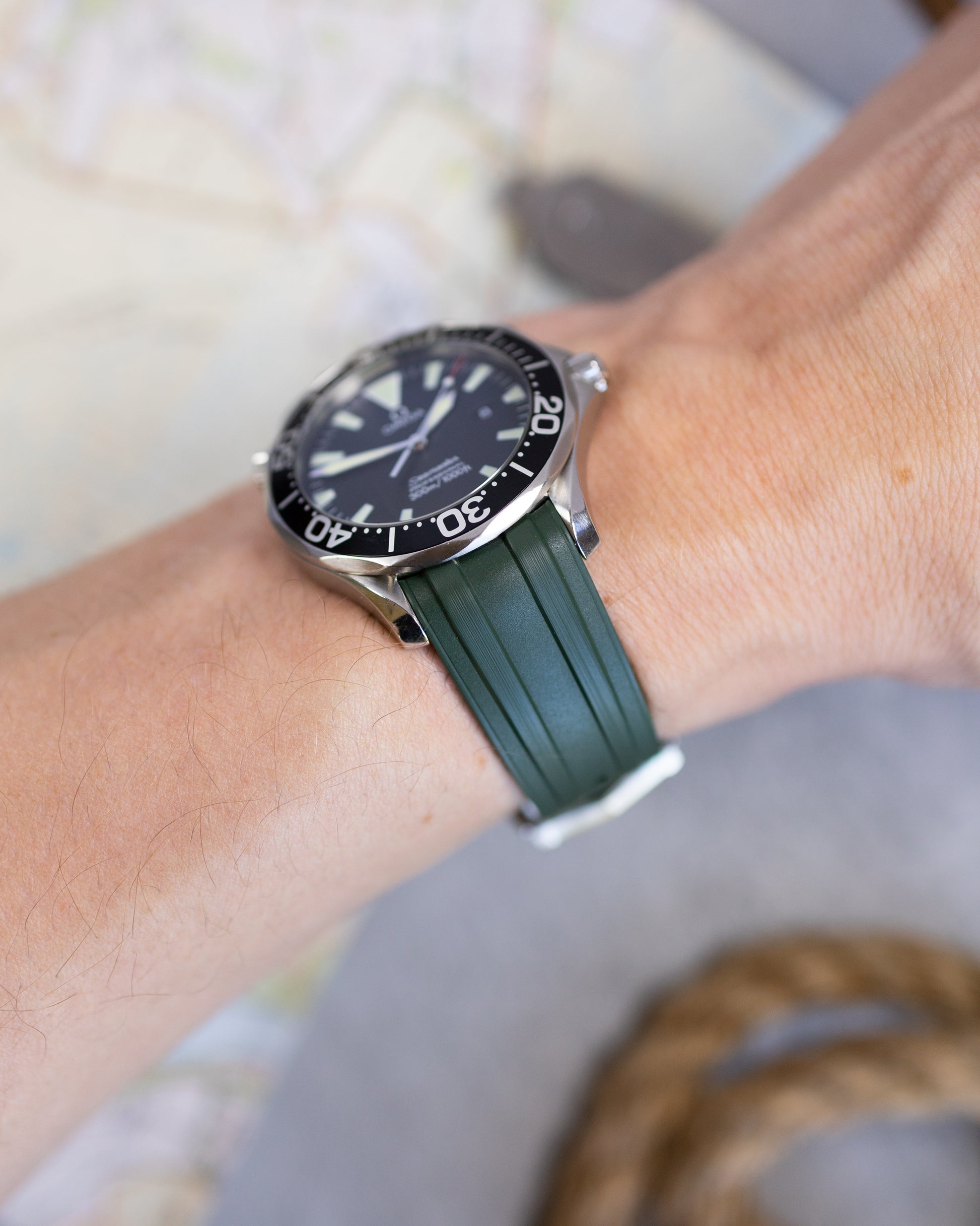 Made from our durable FKM rubber, our new Premium Fitted FKM Rubber strap is made specifically for the Omega Seamaster, fitting the curves of the Seamaster perfectly.