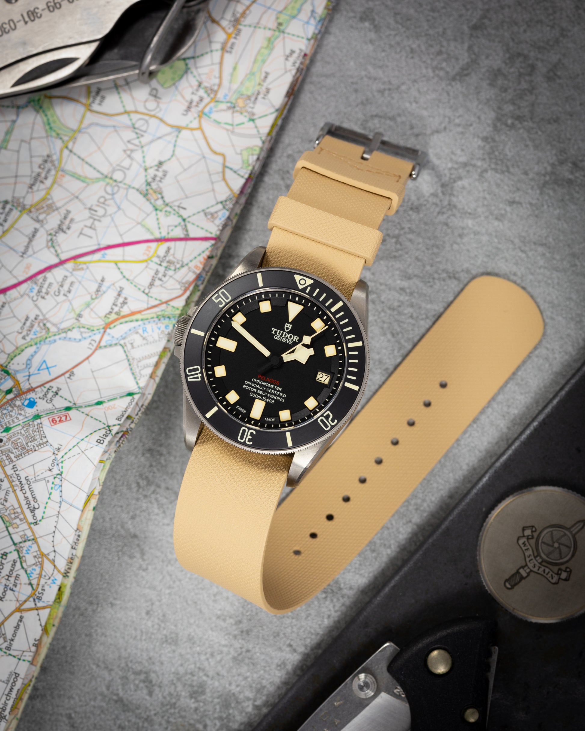 The strap boasts brushed stainless steel hardware, with the YWS proudly engraved upon the clasp, setting it out from the rest.